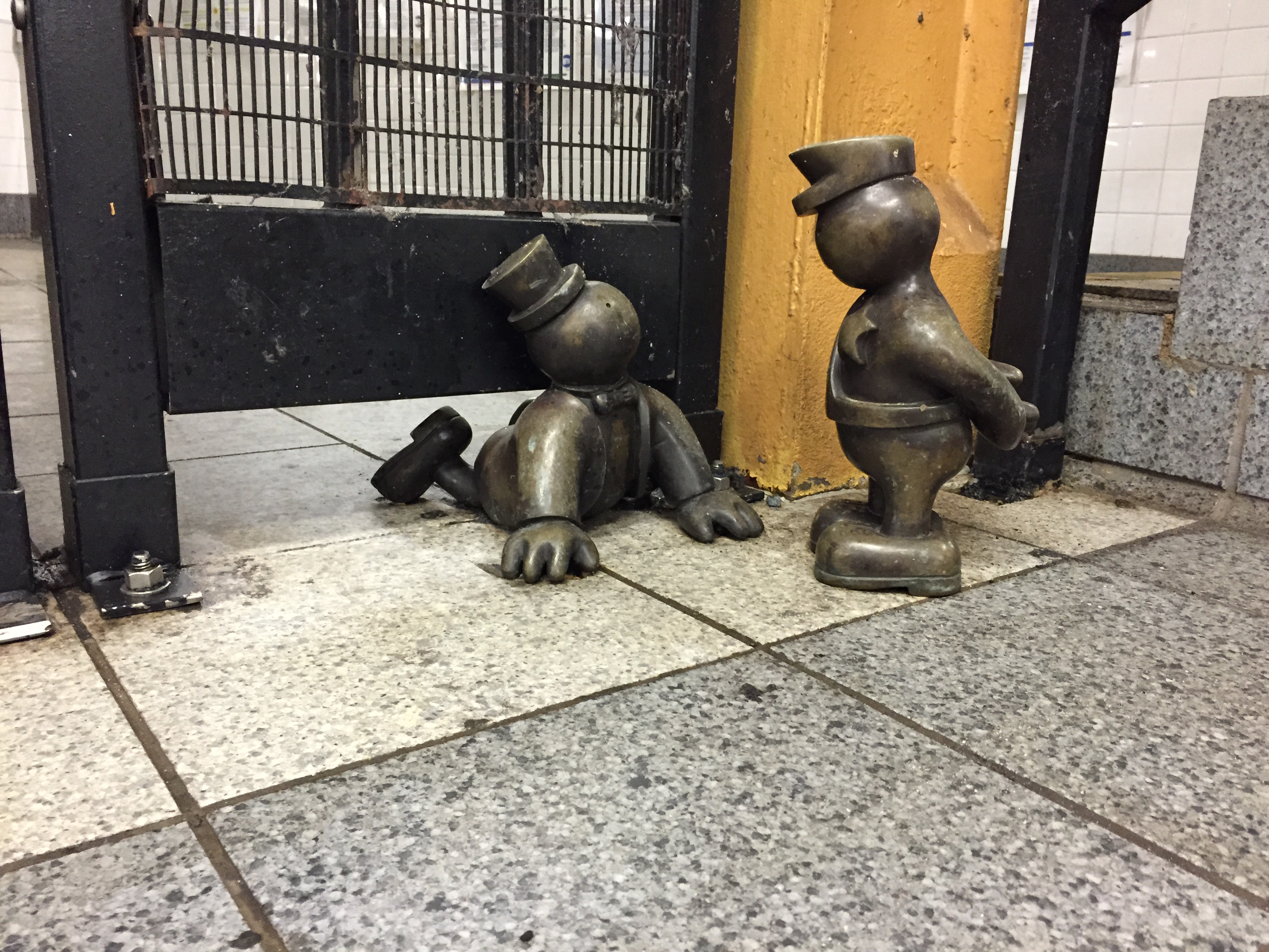 We came across an arcade with several interesting sculptures on our way to Tiffany’s to get a new necklace for my Nike Women’s Half Marathon medal charm. But my favorite sculptures were a series of small bronze figures that were placed throughout the 14th St. and 8th Ave. station.