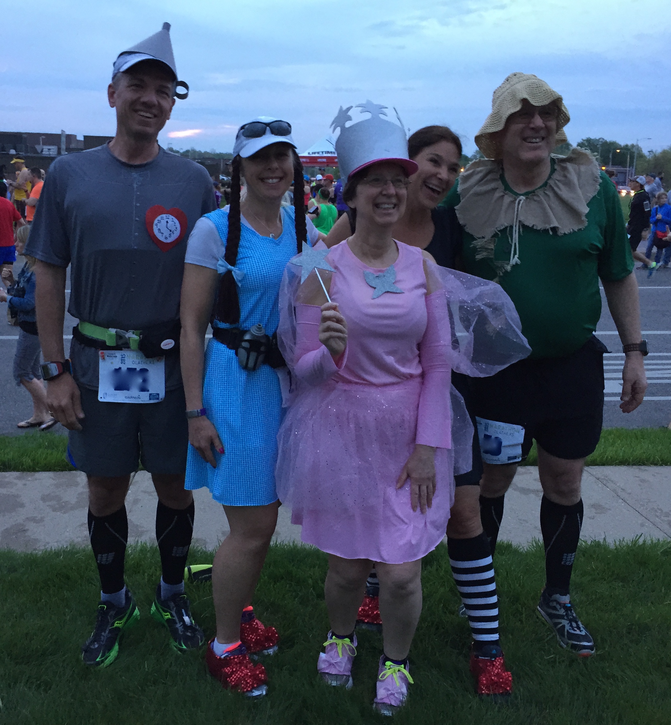 Although I don’t wear costumes for races, there were plenty of people who did. There were lots of women (and even a man) dressed as Dorothy – complete with ruby red running shoes. It was fun to see groups of runners in costumes – each dressed as a different character – Dorothy, the Tin Man, the Scarecrow, Glinda the Good Witch and the Wicked Witch (complete with green face paint).