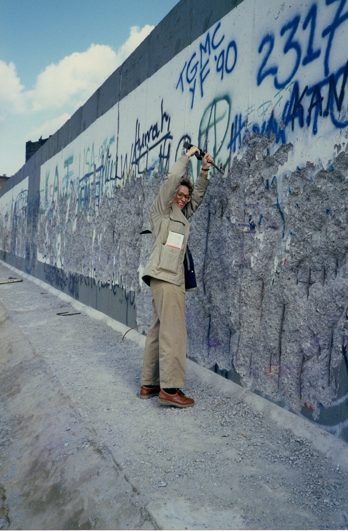 The next thing that told me the 2015 race was my destiny came from my photo albums. We plan to visit our German friends while we are there so I went through photo albums, looking for old pictures to take along and reminisce with them. I came across the album from our 1990 Berlin trip where I found pictures of my husband and me hammering on the Berlin Wall. For 20 Deutsche Marks we rented a hammer and chisel for 15 minutes. The best we could get were small chips and Berlin Wall dust. That was the job for a jackhammer. Looking at all the pictures from our 1990 visit made me realize that the city we will see this time is vastly different. I would not have appreciated that fact as much a year ago. I was too focused on my PR goal.
