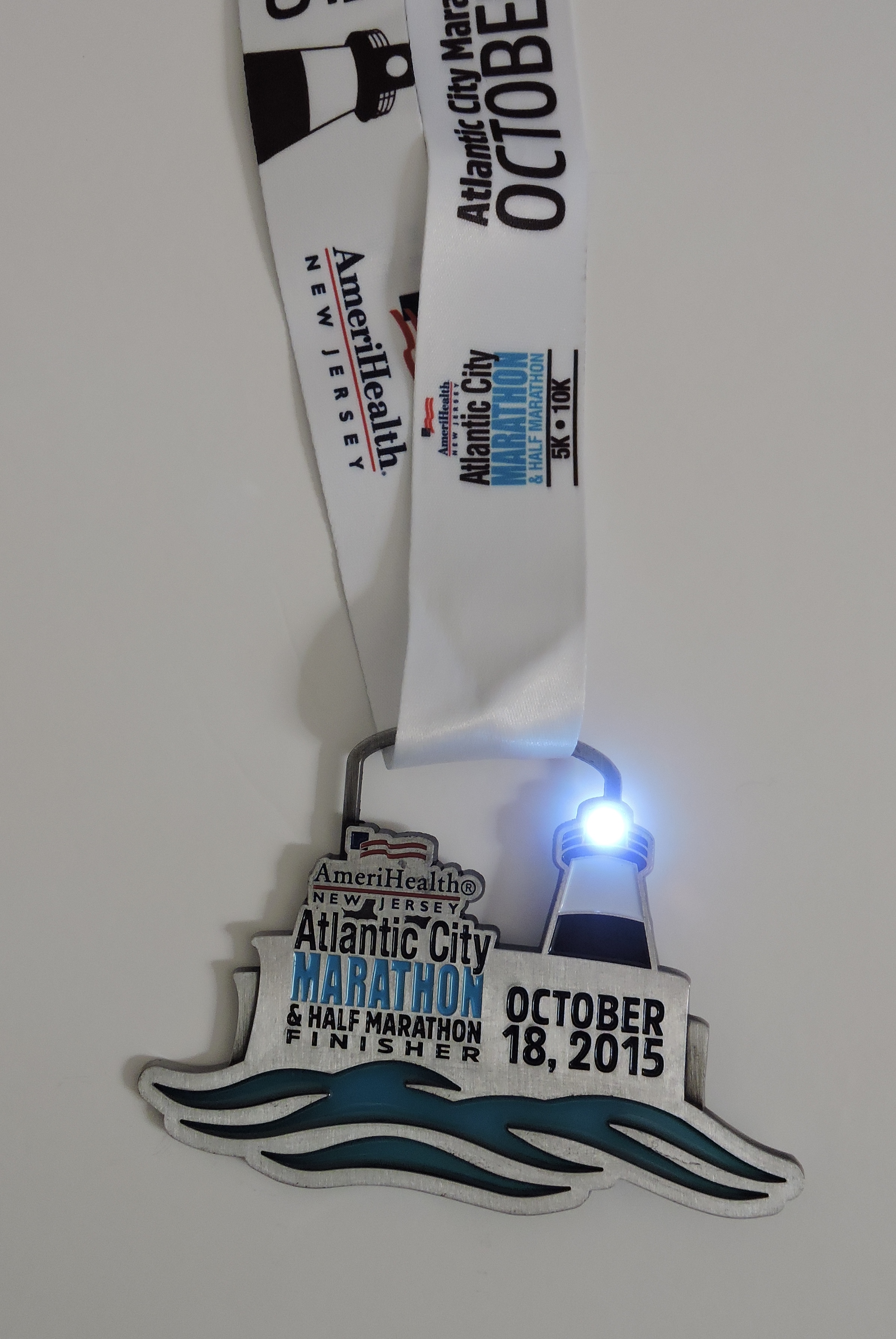 The race was the perfect size for me – about 2,100 runners between the full and half marathons – not too big, not too small. The course started on the Boardwalk but quickly veered off to run through the streets of Atlantic City. There was not much entertainment or cheering crowds along the course for the first half or so. We headed back onto the Boardwalk at Mile 8 where we ran the remainder of the race. The Boardwalk was not closed to other people so we were running through groups of tourists and people on bicycles.