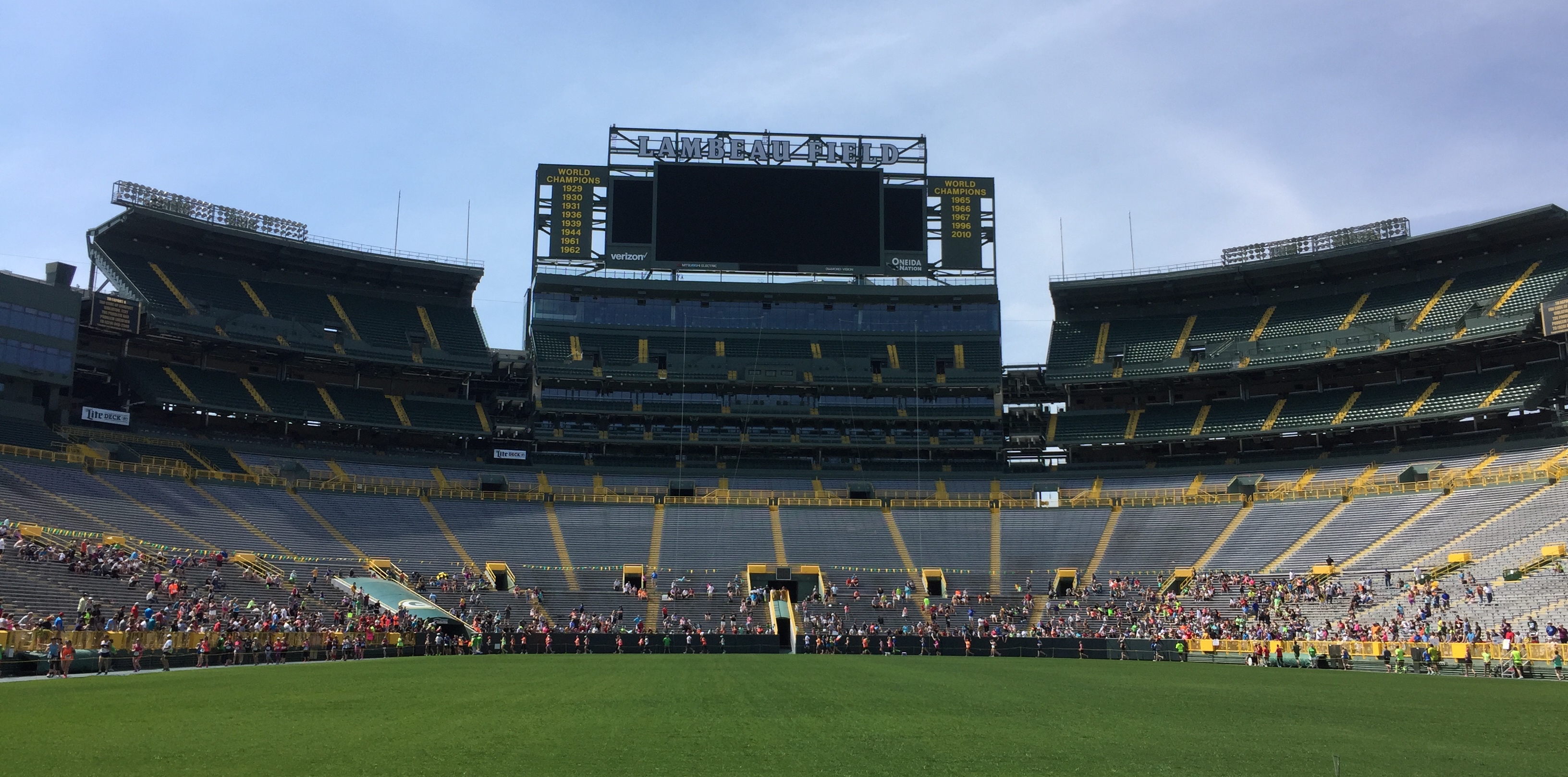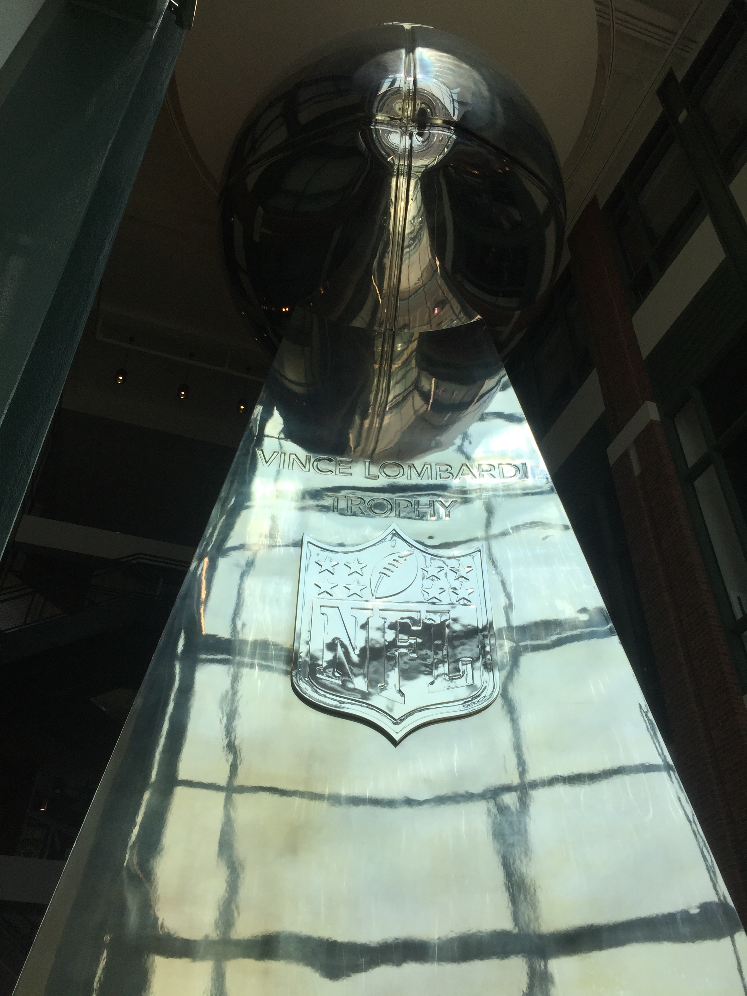 This past weekend I ran the Green Bay Half Marathon where I ran around the inside of Lambeau Field. I am not a big football fan but I have to admit Lambeau Field is impressive. The stadium is the oldest continually operating NFL stadium. Inside the stadium, there is a 50-foot tall chrome replica of the Lombardi Trophy. Weighing 14.5 tons, it is reported to be the largest object ever covered in chrome. No kidding.