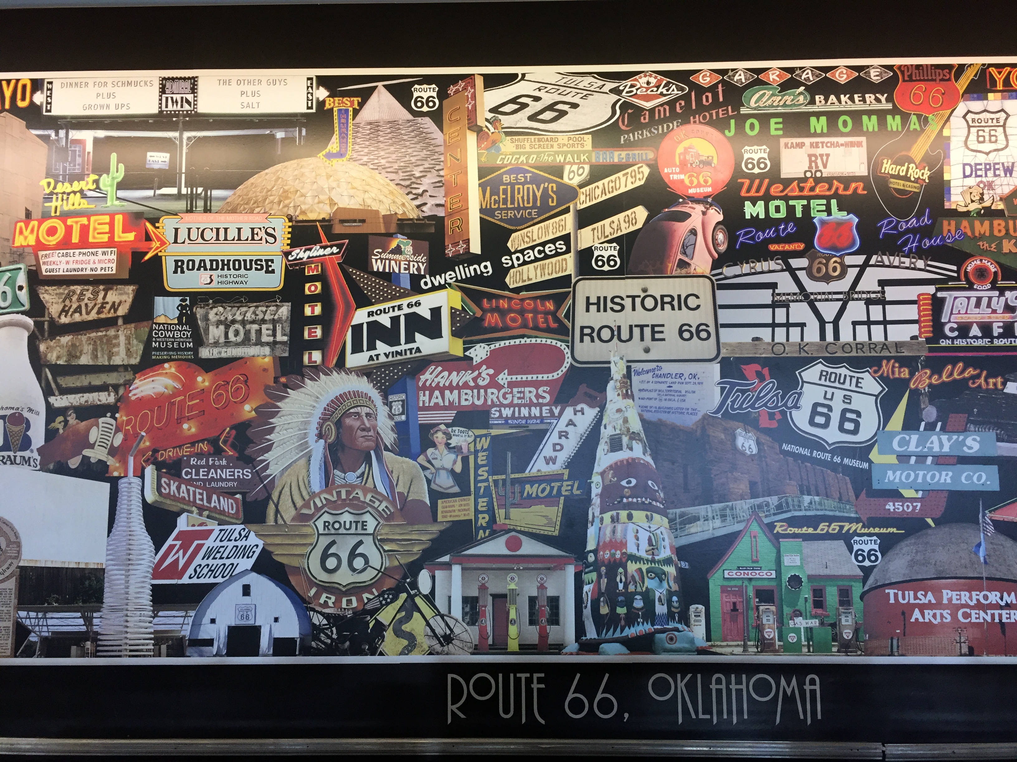 I didn’t know much about Tulsa or US Route 66 before I went there. I knew there was a television series in the 1960s called “Route 66” and a song in the 1940s titled “Get Your Kicks on Route 66”. I did a little research and learned US Route 66, also referred to as the Mother Road, was established in 1926 as one of the first highways in the US. It spans over 2,400 miles from Chicago, IL to Santa Monica, CA. In the early days of automobile travel, if you wanted to head west to California, either as a tourist or to seek new opportunities, you’d travel on Route 66. Tulsa has the longest stretches of Route 66 that pass through a metropolitan area. It seems fitting that a marathon in Tulsa should be inspired by and named for Route 66.