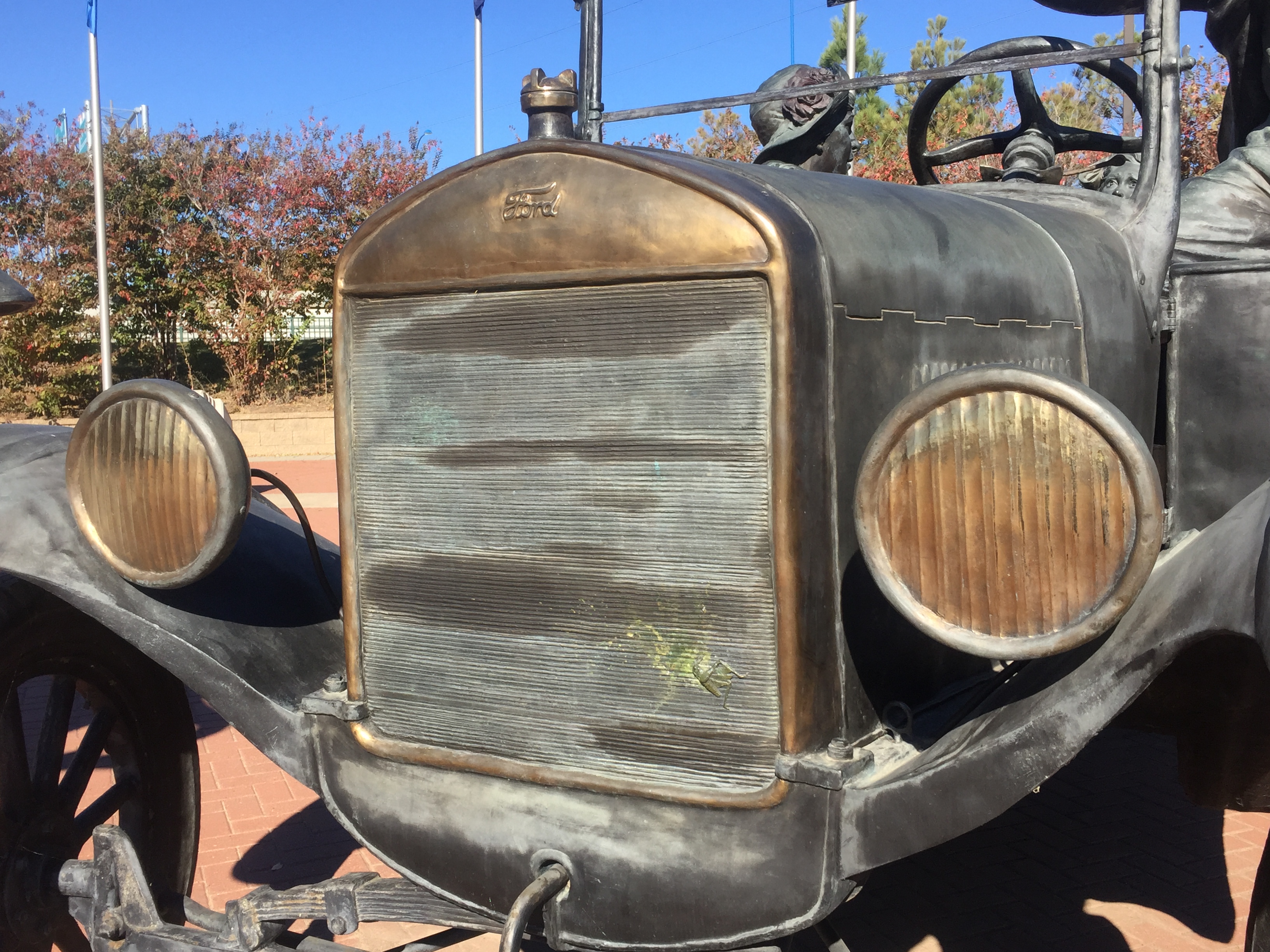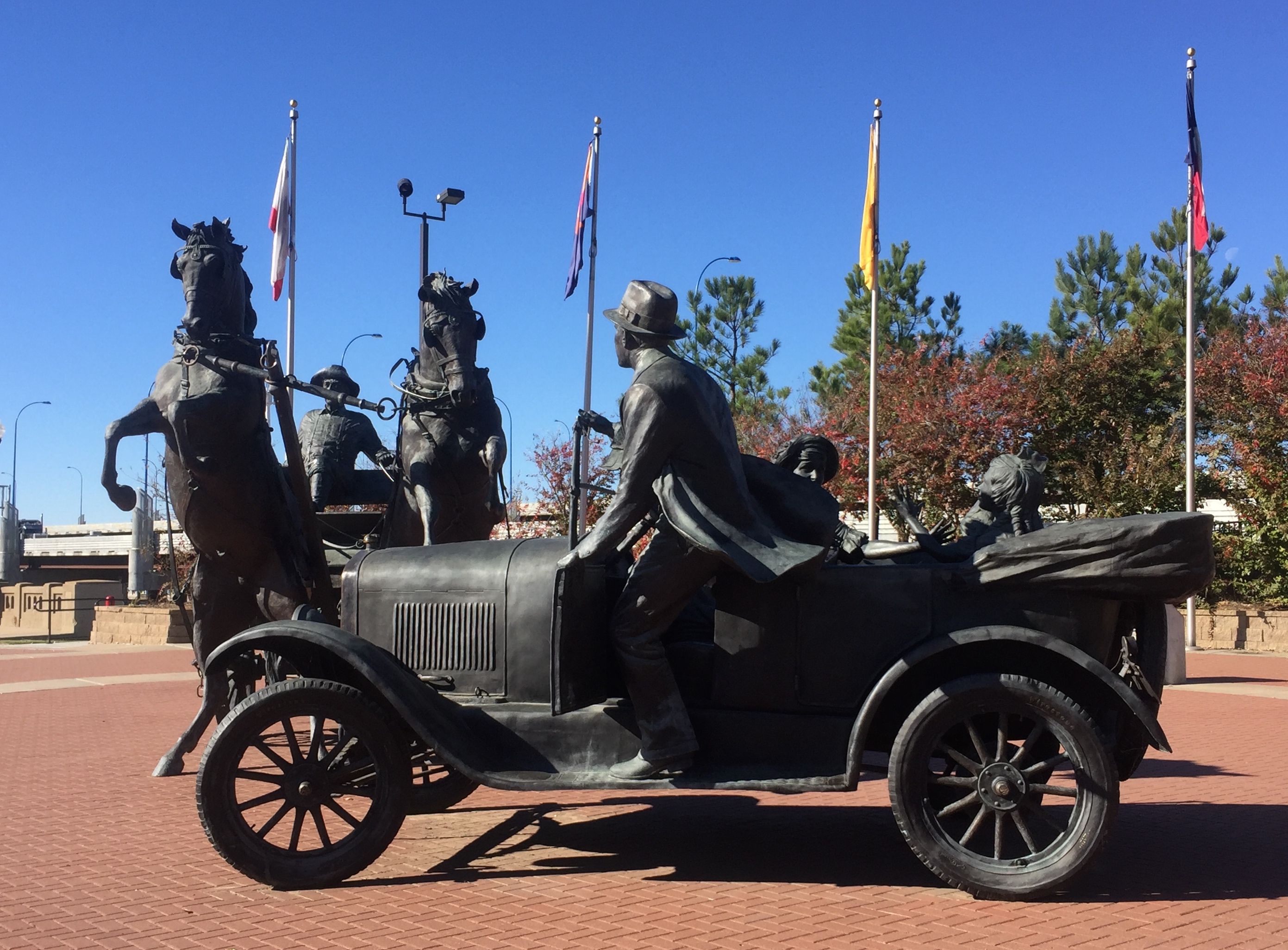 I wandered around Tulsa looking for the quirky sights that make my race travels fun. I wasn’t disappointed. I found a life-sized bronze sculpture of a Model-T nearly colliding with a horse-drawn wagon titled “East Meets West”. The sculpture reflects the changes that accompanied the advent of the automobile with horses startled by the new fangled motor car. The detail on the sculptures was incredible – right down to the dead bug on the car’s radiator.