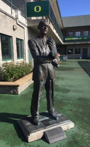 Eugene is home to the University of Oregon, well known for their track and field program. Hayward Field is located on the university campus. Steve Prefontaine (more commonly referred to as Pre) attended the university and competed in track in middle and long-distance events under Coach Bill Bowerman. Both Bill and Pre are legends in Eugene. Bill was a very successful coach, leading the university to multiple national collegiate championships. He did everything he could to help his athletes improve their performances. That included coming up with improved shoe sole designs using his wife’s waffle iron. His innovations ultimately led to him to co-found Nike with Phil Knight. There is a statue of Bill at Hayward Field. The statue rests on a base made to look like a waffle iron.