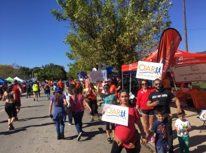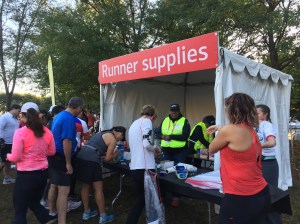 The best part of the race was at Mile 14 where the Charity Block Party was set up. I was stunned by the number of charities represented. There were EZ-Up tents, side-by-side, one after another, lining both sides of the road, representing charities whose runners were fundraising for them. I have run more races than I care to admit but I have never seen anything like the Charity Block Party. It was amazing to see tents for Leukemia & Lymphoma Society, American Brain Tumor Association, Best Buddies, Muscular Dystrophy Association, Alzheimer’s Association, and The Organization for Autism Research (OAR) to name just a few. Each was manned by enthusiastic cheering volunteers. I was so overwhelmed by the sight of all these groups that I stopped just to look at them all. It is incredible how galvanizing a cause can be for people and in such a positive way.