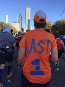 With such easy access for everyone across the country as well as around the world (from over 100 countries), the Chicago Marathon is a big race. About 45,000 runners participated in this, the 40th anniversary of the race. At the start, runners were divided into three waves with multiple corrals in each. They staggered the wave starts so there were about 30 minutes between each wave. I was in the last corral in the last group – the L corral. Doesn’t get worse than that but I have to admit – it was fun back there.