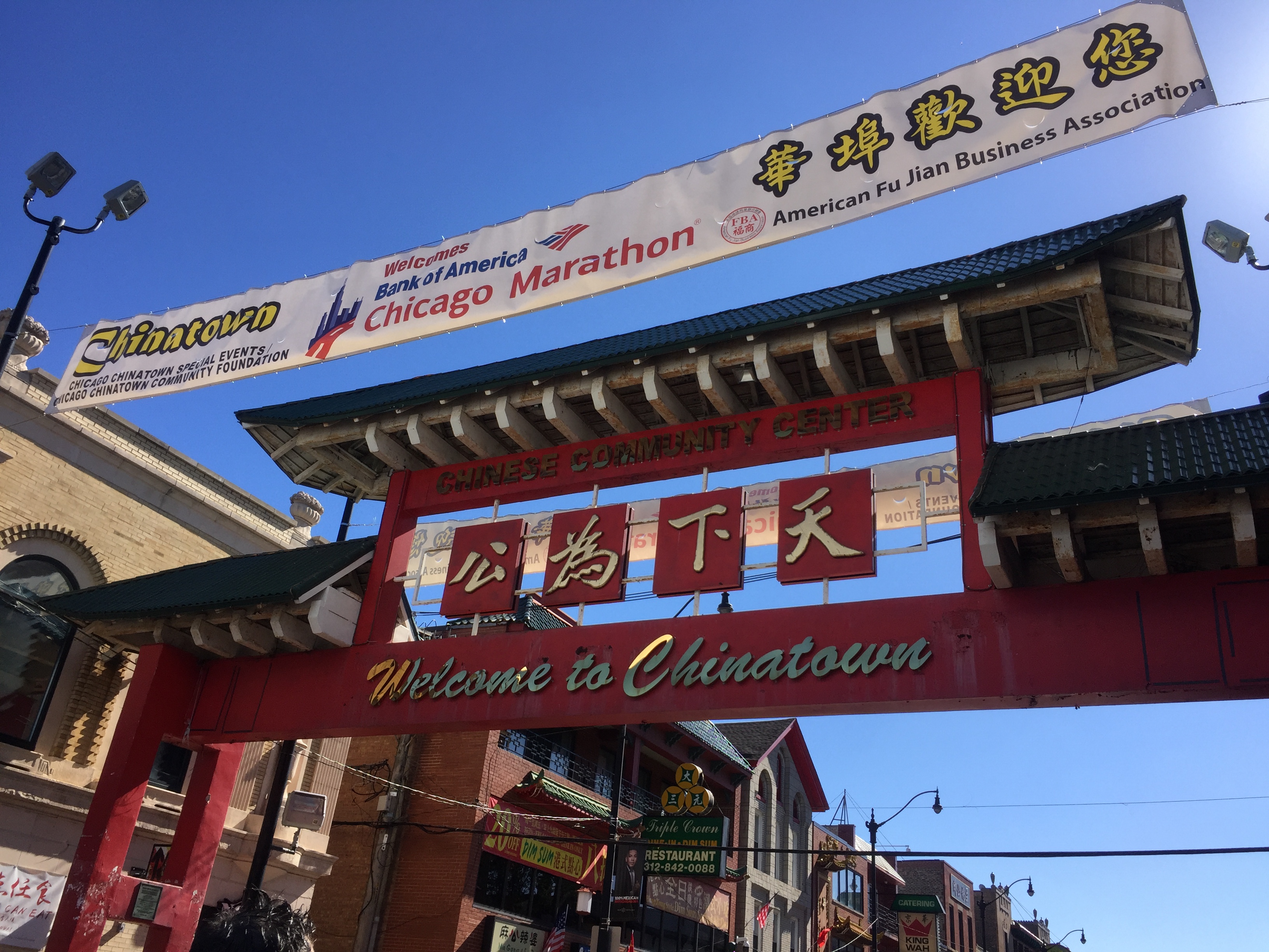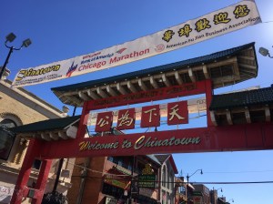 The last 6.2 miles of the course were the toughest. We turned onto Wentworth Avenue and ran through the huge red gate that welcomed us into Chicago’s Chinatown. There were plenty of cheering spectators here but once we left Chinatown, things were less exciting. This is typically the point where runners will hit the proverbial wall in a race – where there aren’t so many cheering spectators or interesting things to see. The only thing that kept me going was the realization that each step was getting me closer to the finish.