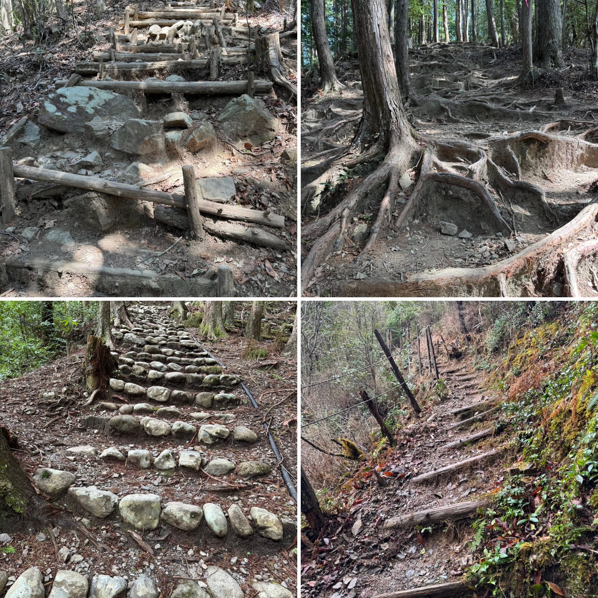 The trail into the village of Chikatsuyu and on towards my final stop for the day in Tsuguzakura-oji. was paved.  In 1109 a pilgrim had written about a cherry tree that had been grafted on a Japanese cypress; the name “Tsugizakura” means “grafted cherry tree.”  Around this shrine was a grove of cedar trees, some as big as 8 meters in circumference and believed to be up to 800 years old.  Day 2 was done and I had obtained all 7 stamps.  I had logged 27,035 steps and climbed 168 flights. It was easy to fall asleep that night, even if I was again sleeping on a tatami floor.  Getting up off the floor in the morning might not be as easy.