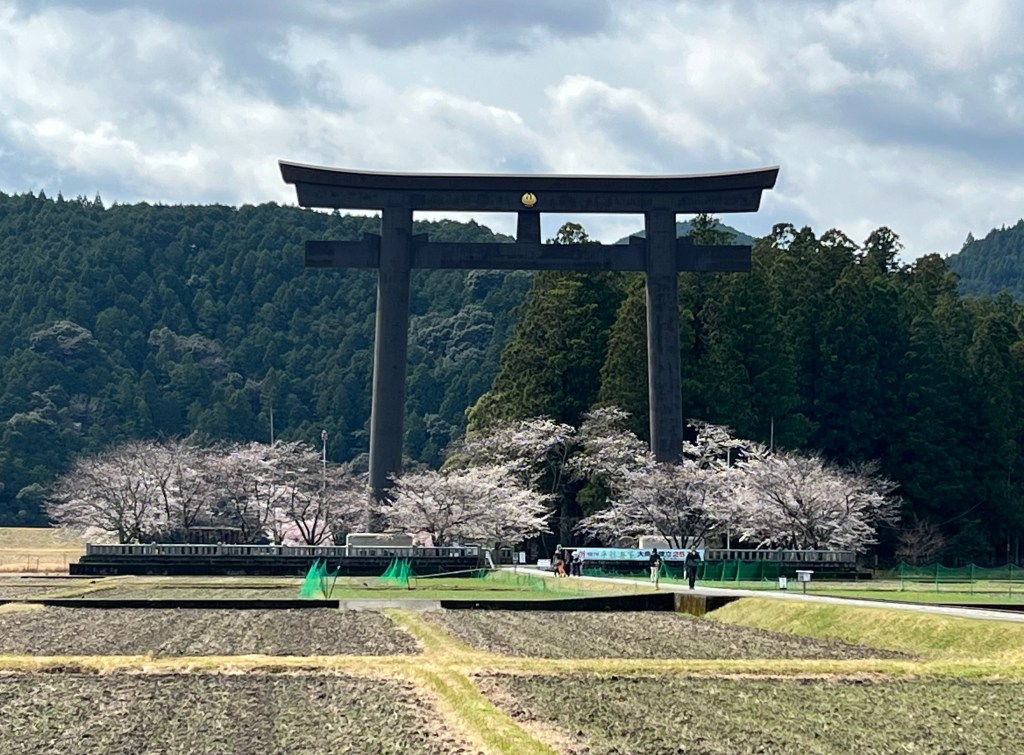 Otorii Gate in Hongu – largest in the world surrounded by cherry trees in bloom